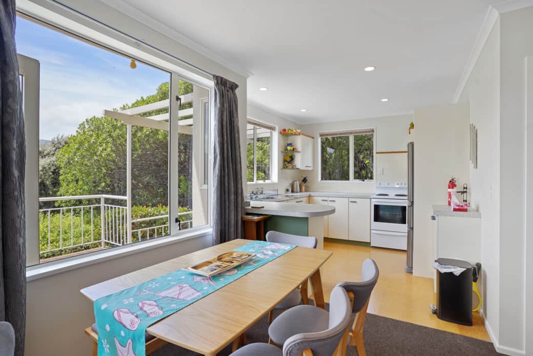 This recently renovated holiday home has open plan living with a full kitchen and modern facilities.